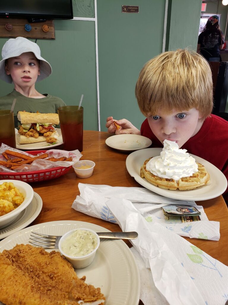 Viewing and playing with alligators will work up the appetite! We found an amazing gem of a restaurant near our campground in Westwego. The Little Kitchen had all of our favorites, a fun atmosphere, and great low prices! If we had gone there sooner during our stay we definitely would have gone there often!!