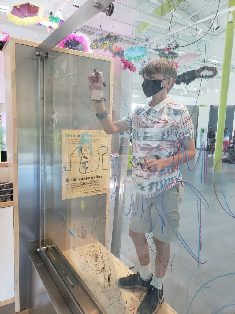 Then we went back inside for a quick tour of some of their play spaces. We enjoyed the ball conveyors, and the art and music spaces.