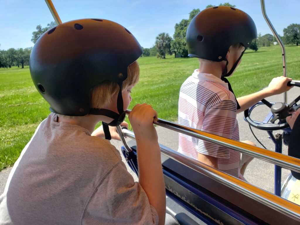 Lastly, after fun at the Children’s Museum, we decided to go for a “Sunday Drive” in a 4-person Surrey Cycle! We enjoyed riding around the lake, and each boy got a turn at driving.